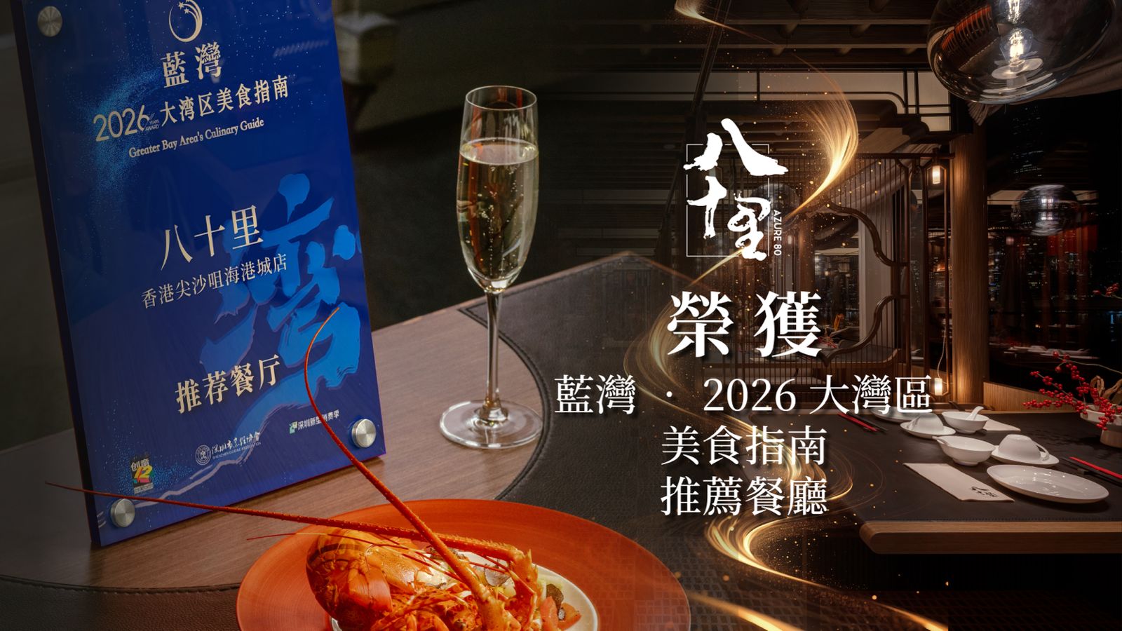 八十里非常高興獲選為「藍灣 ‧ 2026大灣區美食指南」推薦餐廳之一!這份殊榮不僅是對菜式品質的肯定,亦是對團隊多年來堅持匠心烹調與專業服務的莫大鼓勵。餐廳一直以川滬佳餚為核心,嚴選時令及新鮮食材,從招牌龍蝦與多款海鮮佳餚,以至豐富多元的肉類菜式,每一道皆講究火候與細節,呈現層次分明的風味。除餐桌上的美饌外,八十里亦以貼心周到的專業服務見稱,並坐擁270度維多利亞港壯麗景觀,營造優雅的用餐體驗。誠邀您親臨八十里,在美景與佳餚之間,細味這份來自專業指南的肯定!